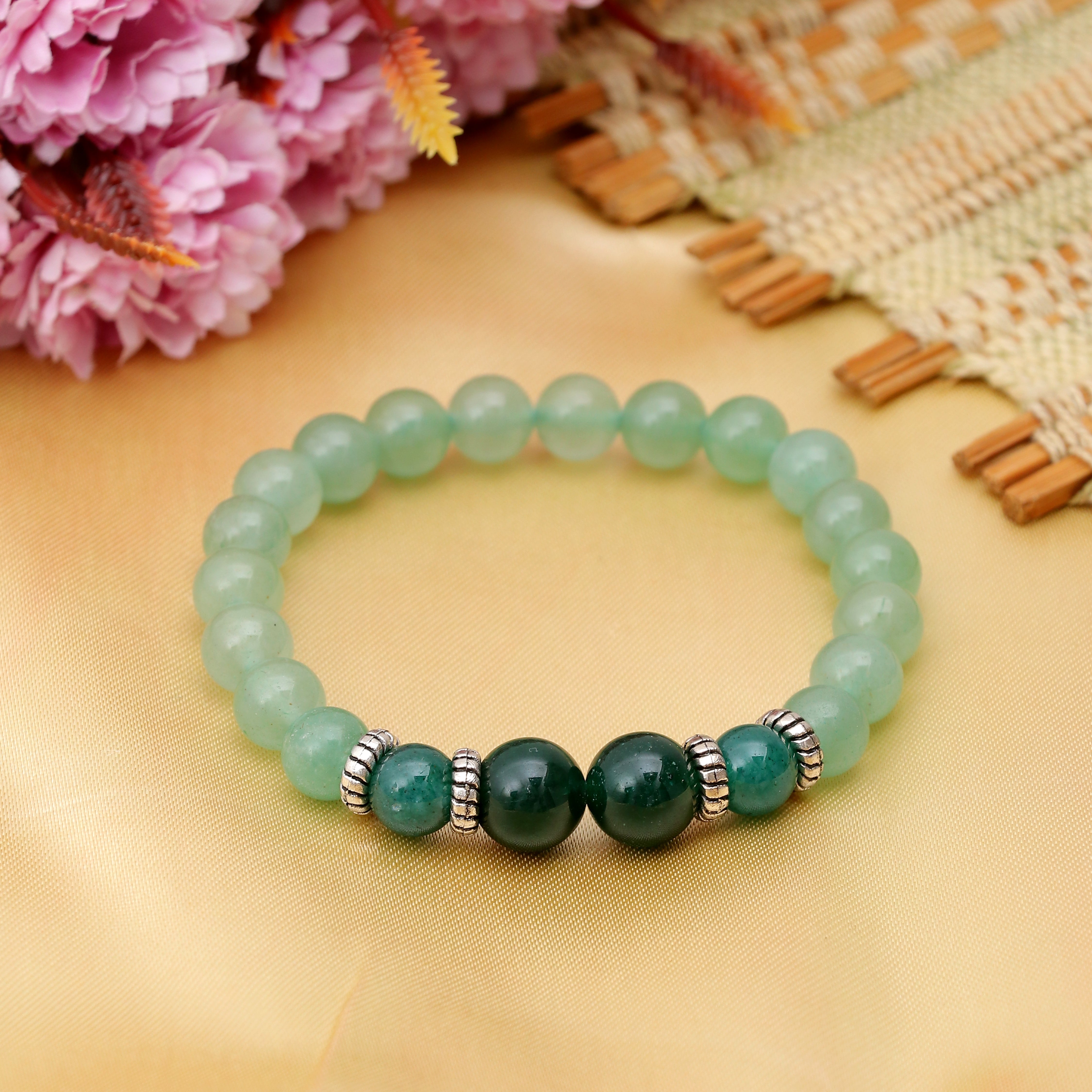 Enhance your vitality and promote emotional balance with the Rudratva Green Aventurine Bracelet, specially designed for those born under the Mithun Rashi (Gemini). This bracelet harnesses the properties of green aventurine, known for its ability to attract luck, prosperity, and positivity.